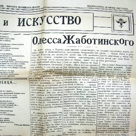 Статья А. Седых «Одесса Жаботинского» в «Новом русском слове». 1947 год.