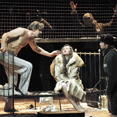Сценическое пространство серо-стального цвета организовано так, что это – и старый московский двор с волейбольной площадкой, и квартира ученого, и блиндаж под Сталинградом, и немецкий концлагерь, и камера Лубянки, и ГУЛАГ… Все эти «преображения» обеспечены художником Алексеем Порай-Кошицем простыми средствами: металлическая сетка похожа на решетку, а упирающийся в потолок буфет служит и хозяевам квартиры, и лагерникам. Известно: такая простота обслуживает гениальные замыслы. Огромный роман сжался по законам театральной поэзии, история жестокого века предстала перед нами в одном-единственном измерении – человеческом.