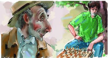 Он так меня упрашивал, что отказаться я не мог. Ничего со мной не станет, подумал я, если из благотворительных соображений я сыграю с ним «партишку». Мы же под этим платаном не за почетное звание чемпиона мира поборемся.