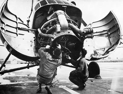 Наземные службы проверяют механизмы боевого вертолета перед боем.