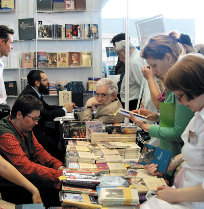 Сама ярмарка это впечатление только усиливала. Еврейскую литературу здесь представляли сразу три «субъекта». Во-первых, Израильский культурный центр, выставивший книги нескольких израильских издательств (как русско-, так – в меньшей степени – и ивритоязычные). На том же стенде расположилось крупнейшее русско-израильское издательство, выпускающее книги по иудаике (в широком понимании термина), – «Мосты культуры / Гешарим». Во-вторых, уже упоминавшийся «Текст» и недавно возникшее близкородственное ему агентство «Книжники», специализирующееся на оптовой торговле и интернет-продажах книг еврейской тематики. Во время ярмарки стало известно, что проекты фонда «Ави Хай» – серии «Проза еврейской жизни» и «Чейсовская коллекция» – теперь будут выпускаться совместно «Текстом» и «Книжниками». В-третьих, разумеется, не обошлось без «Международной академии каббалы» – последователей поп-каббалиста Михаэля Лайтмана, представлявших книги своего гуру и раздававших газеты с его лекциями. На всей продукции, естественно, Лайтман, объясняющий каббалистические премудрости то Армену Джигарханяну, то Дмитрию Диброву, то Яне Чуриковой. Остается с прискорбием констатировать, что русско-израильский каббаловед отстал от жизни – в текущем сезоне к тайному знанию нужно приобщать Диму Билана. А еще лучше Гуса Хиддинка.