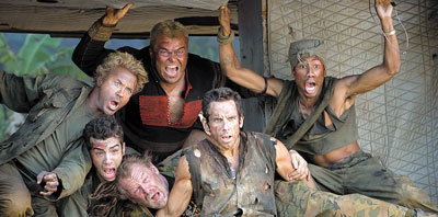 «Солдаты неудачи» – история съемок лучшего военного экшна, экранизации бестселлера о войне во Вьетнаме. В эпической драме заняты пятеро актеров: оскароносный Кирк Лазарус (блестящий Роберт Дауни-младший) – австралийский душка, специально для фильма перенесший операцию по временному превращению в чернокожего; Джефф Портной (Джек Блэк) – звезда фильмов про пердеж; Альпа Чино (Брэндон Т. Джексон) – настоящий чернокожий, постоянно высмеивающий фальшивые «йо, бро» Кирка Лазаруса; молоденький паренек, чье имя никто не может запомнить, и, наконец, Тагг Спидман (режиссер фильма Бен Стиллер). Для Спидмана это последний шанс возродить кинокарьеру, буксующую в бесконечных сиквелах. Актеры отправляются в джунгли, а там режиссер случайно подрывается на старой мине («Так где же он?» – «Да он тут повсюду»), и им приходится идти сквозь джунгли одним, в полной уверенности, что они снимаются в кино. На самом деле они уже давно оказались в реальной жизни, и за ними охотятся вполне реальные наркоторговцы. Каждый из актеров делает то, к чему привык: Лазарус выдает такую систему Станиславского, что деревья трясутся («Это не я читаю сценарий. Это сценарий читает меня»), Спидман честно и бездарно отрабатывает каждую сцену. Где-то в Лос-Анджелесе мерзоидный продюсер кричит на подчиненных и предлагает бросить актеров в джунглях.