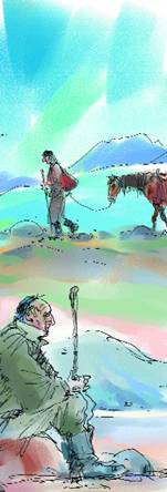 Старик удобно сидел в глубоком седле, под ним ходко шел по тропе молодой меринок, вколачивал копыта в сухую тропу, петлявшую по плечу ущелья. Внизу, метрах в трехстах, бежала с гор темная река, тащила камни; грохот и гул потока были здесь почти не слышны. На совсем узких пролетах тропы меринок пугался, прижимал уши к голове, но Старика это не тревожило ничуть – отпустив повод, он дал лошади волю и поглядывал вниз, в пропасть, чуть не с вызовом. Терять ему было нечего, кроме мерина да старого курджуна, в одном кармане которого лежала турецкая сумка, а в другом торба с овсом, узелок с лепешками, тройка луковиц и брус вареного мяса, завернутого в ситцевую тряпицу. Провизию дал ему в дорогу, прощаясь, круглолицый Иса вместе с пожеланием собрать на Алае побольше лечебной травы. Золотой человек Иса, такие теперь редко попадаются на свете, да и раньше встречались не через одного.