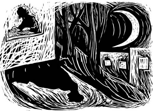 Борух-Лейб склоняется над книгой Зоар и медленно водит пальцем от строки к строке, словно исследуя карту потаенного мира, куда он собирается в долгое путешествие. Каждое слово, произносимое им шепотом, он повторяет с чувством единения с Б-гом. Поскольку арамейский язык труден для Боруха-Лейба, книга кажется ему еще более загадочной. В свете настольной лампы буквы искрятся золотом. Освещена только половина длинного лица хироманта: длинный нос и большой неподвижный глаз. Вторая половина его лица в тени и словно принадлежит другому миру – миру теней, застывающих на стенах и на полу комнаты. Хиромант изучает по книге Зоар искусство гадания по руке.