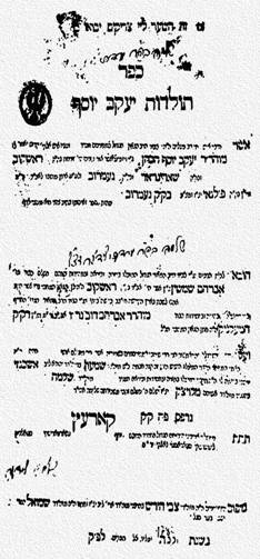 Речь веду о книге, появившейся у вас в месяце менахем ав, в году 5541‑м (1781), написанной раввином Полонного Яаковом-Йосефом. Тема книги – толкования и назидания, которые произносятся, как это принято у них, в субботу, во время третей трапезы, а в них – новый стиль, перенятый ими у их учителя, называемого Исраэль Бааль-Шем, про которого сочинитель сей пишет: «слышал я это от моего учителя, который получил это от своего учителя, Ахьи а-Шилони». Направленность книги – совратить народ Израиля и подстрекать идти их путем, а не дорогой нашей святой Торы и предков наших. А построено все на том, чтобы прервать напряженное изучение Торы, как в том, что касается ее явного смысла, так и в том, что принадлежит тайному учению, и чтобы каждый похвалялся знанием по разумению своему и тратил весь день на раздумья о зловредном, сменив этим помыслы о добре. И назвал книгу «Бейт Яаков-Йосеф», выпустив ее без единого одобрительного отзыва.