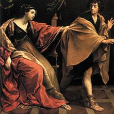 Йосеф же был красив станом и красив видом. И случилось после этих происшествий, жена господина его возвела взоры свои на Йосефа и сказала: ляг со мною. Но он отказался, и сказал жене господина своего: ведь господин мой не знает при мне ничего в доме, и все, что имеет, отдал в руки мне. Он не больше меня в доме этом, и он не удержал от меня ничего, кроме тебя, потому что ты жена ему, а как же сделаю я это великое зло и согрешу пред Б-гом. И бывало, когда так она говорила Йосефу ежедневно, а он не слушался ее, чтобы лежать с нею, чтобы быть с нею, то случилось в один из таких дней, что он вошел в дом делать дело свое, а никого из домашних людей там в доме не было; она схватила его за одежду его и сказала: ложись со мной. Но он оставил одежду свою в руке, побежал и выбежал вон.