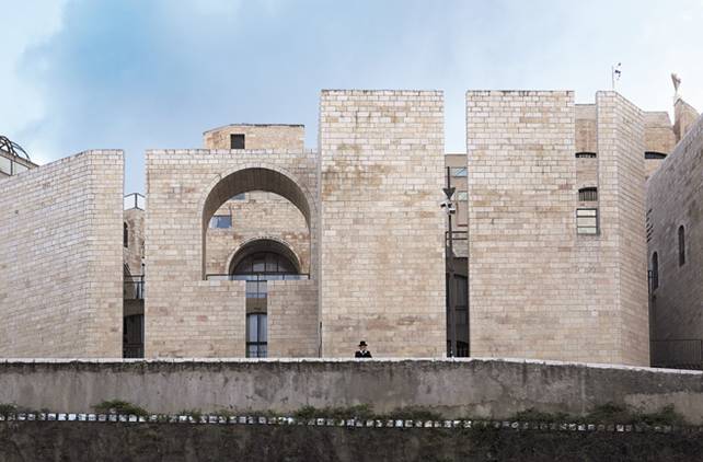 Вид от Стены Плача на ешиву Порет Йосеф. Архитектор Моше Сафди