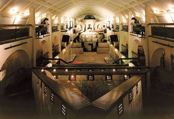 Идея, по сути, сводилась к тому, чтобы воссоздать в интерьере средневековый театр на площади. В общем-то, не фокус – такие театры в мире есть, именно так устроен лондонский «Глобус», который тогда как раз восстановили на левом берегу Темзы. Фокус состоял в том, на площади какого города театр оказывался. Там были так устроены ряды, что отовсюду они казались переулками, хаотически взбирающимися вверх, к вершине амфитеатра. Но была точка, в которой вся эта сеть переулков вдруг складывалась в магендовид. Не то чтобы это был Иерусалим – от реального Иерусалима только то, что ряды были каменными, светлого песочного камня, – скорее символ Иерусалима. Город был старым, с тем случайным поведением улиц и переулков, которое бывает только тогда, когда по ним ходят несколько веков и несколько веков перестраивают. Наверное, правильнее всего это было бы назвать театральной декорацией, изображающей Иерусалим. Замысел состоял в том, чтобы зрители видели сцену, а за ней – вид Иерусалима, только не нарисованный, а населенный реальными людьми – другими зрителями.