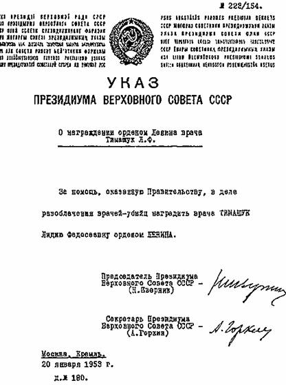 Вот именно – чего им не хватало? Зачем им было кого-то неправильно лечить? Лучшие в стране врачи, в Кремле работали. Получается, что они всю жизнь учились и набирались опыта только для того, чтобы кого-то отравить. Как какая-то сеньора Тофана. Может, все-таки еще выяснится, что они не виноваты.