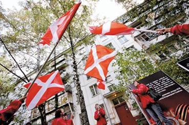 Пикет, организованный активистами движения «Наши» около дома журналиста А. Подрабинека на улице Металлургов