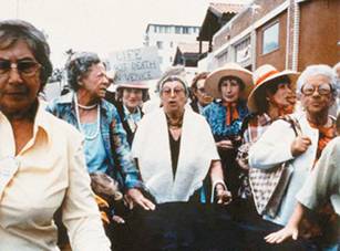 Демонстранты требовали, чтобы пожилым людям обеспечили безопасные пешеходные зоны – без велосипедов и скейтбордов, и добились успеха. Фотография этой демонстрации, прошедшей под лозунгом «Жизнь, а не смерть в Венеции», стала визитной карточкой одноименного фестиваля искусств, организованного Б. Майерхофф в 1980 году