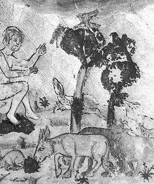 Адам, называющий животных. Иллюстрация из Золотой агады. Испания. XIV век. Британская библиотека, Лондон