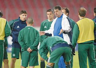 Ицхак Шум на тренировке афинского «Панатинаикоса» перед Лигой чемпионов. Штутгарт. 21 октября 2003 года
