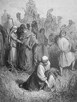 После смерти мужа и сыновей Наоми вдова Элимелеха, решила вернуться в родной Бейт-Лехем вместе со своей вдо́вой невесткой. Однако вскоре выяснилось, что им не на что жить на родине. И тогда Рут отправилась собирать на полях колоски, забытые и оброненные жнецами. Это было вполне логично – согласно Торе, каждому земледельцу следовало оставлять опавшие колоски, дабы их могли подобрать бедные и нуждающиеся: «Когда будете жать жатву на земле вашей, не дожинай до края поля твоего, и оставшегося от жатвы твоей не подбирай, и виноградника твоего не обирай дочиста, и попа́давших ягод в винограднике не подбирай; оставь это бедному и пришельцу» (Ваикра, 19:9:10). Поэтому, когда Боаз, владелец поля (оказавшийся родственником Наоми), обнаружил на своем поле не только своих работников, он ничуть не удивился и лишь поинтересовался, что это за женщина (см. Рут, 2:5).