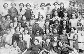 Класс Леи Трахтман-Палхан в женской гимназии (Лея во втором ряду снизу, пятая справа). Тель-Авив. Конец 1920-х годов