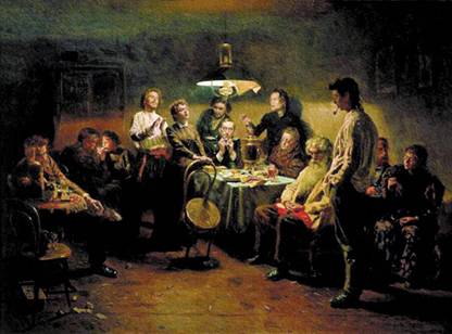 Владимир Маковский. Вечеринка (фрагмент). 1875–1897 годы.