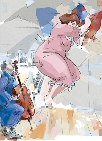 Зора тихо кружилась в вальсе по ковру гостиной. Виолончель лежала на полу, а Дворкин сидел рядом и пощипывал струны в такт танцу.