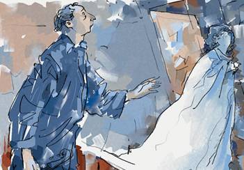 Ночью после ее возвращения из одинокой поездки Дворкин, разбуженный вспыхнувшей в небе мелодией виолончели, в желтой пижаме и синем шерстяном халате, стоял на террасе и смотрел на густые звезды.