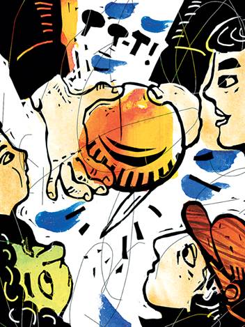 Монетой больше, монетой меньше… Тетя Фейга выбирает лучший, самый тяжелый апельсин, заворачивает его и опускает в кошелку, рядом с яйцами, луком, пуримскими вкусностями и всякой всячиной. Приходит тетя Фейга домой, набрасывается на нее детвора, от одиннадцатилетнего мальчика, который уже учит Гемору, до младшенького, который учит Пятикнижие, – их накануне праздника освободили от занятий в хедере, – и сразу же начинается ревизия маминой кошелки: