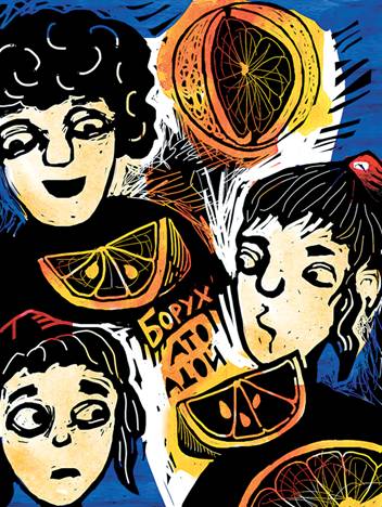 Затем раздаются остальные дольки апельсина, по порядку, снизу вверх, пока очередь не доходит до мальчика, который уже учит Гемору. Он берет свою дольку, поигрывает ею, потом кусает, чувствуя при этом и чудесный вкус, и привет Страны Израиля, о которой он столько раз мечтал в хедере. Апельсины же растут только в Стране Израиля...