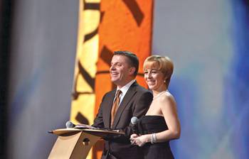 Новым в этот раз стало общее настроение вечера. Впервые столь отчетливо оказалась выраженной собственная позиция организаторов премии. И сделано это было со вкусом, без надрыва и чрезмерного пафоса, интеллектуально, продуманно. Проявилось это и в выборе лауреатов, удостоенных премии, и в выборе ведущих. Журналисты Марианна Максимовская и Леонид Парфенов – это не шутливый парный конферанс, – одно появление этих журналистов на сцене создало у зрительного зала определенный эмоциональный настрой, а абсолютно узнаваемая интонация каждого из них наполнила произносимый ведущими текст дополнительным смыслом и ассоциациями. Интеллектуальный настрой церемонии ничуть не помешал теплой и дружеской, почти семейной, атмосфере вечера, в котором нашлось место и хорошим шуткам, и ярким музыкальным номерам. Каждому из 11 лауреатов были вручены диплом и приз – статуэтка «Скрипач на крыше», созданная известным израильским скульптором Франком Мейслером специально для премии ФЕОР «Человек года».