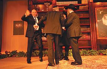 Ребе танцуют Геннадий Боголюбов, Эдуард Эльштейн и раввин Шмуэль Каминецкий.