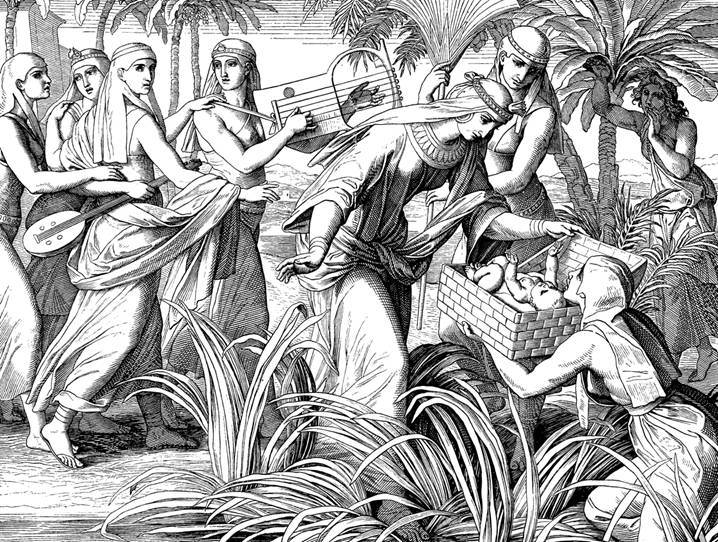 Дочь фараона находит Моше. Гравюра Юлиуса Шнорра фон Карольсфельда из книги «Религия дома, или Увлекательные библейские истории». 1913 год