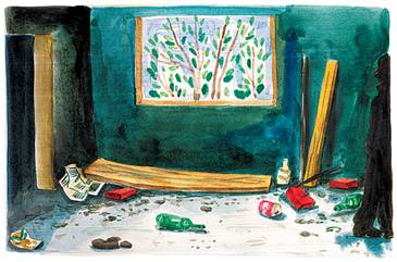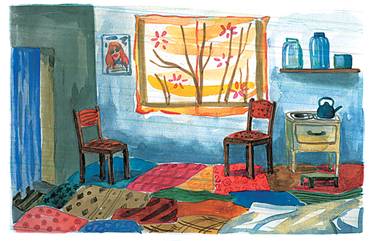 Две недели они собирали по помойкам одежду, всякую, какая попадется, затертые одеяла и драные простыни, любые тряпки, и стирали все в автопрачечной. На стирку и на толстые иглы с прочными кручеными нитками ушли почти все наличные. Затем Фимка уселся перед этой горой тряпья, усадил Гошу, и в несколько дней они состегали два пухлых, многослойных и многоцветных ковра. Обе комнаты сразу преобразились, по коврам было и ходить приятно (только босиком! – предупредил Фимка), и спать на них мягко. Из рваных простыней Фимка выбрал какие получше, не поленился постирать их дважды и расстелил в обеих комнатах в спальных углах. На пустые оконные проемы он набил туго натянутые полупрозрачные разноцветные тряпки, и комнаты заиграли радужными зайчиками, как от витражей.
