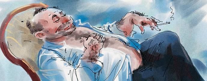 С сигнальным экземпляром в руке я к нему постучался. Он мне открыл в исподнем; от него воняло. В очках недоставало одного стекла.
