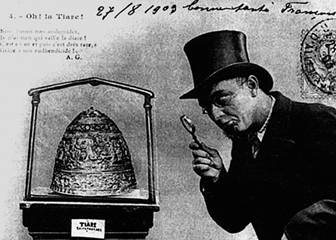 Спустя некоторое время захожу я однажды на фабрику «Жако». И директор говорит мне с улыбкой: «Знаете, куда попала ваша тиара? Можете принять от нее привет!» Он показывает мне газету «Фигаро» из Парижа и зачитывает большую статью о том, что музей Лувр имел счастье купить шедевр, тиару скифского царя по имени Сайтоферн. Ее нашли в земле Крыма, и возраст ее более двух тысяч лет. К этой статье дали фотографию тиары в натуральную величину, а также перевод на французский язык надписи, которую я на ней сделал в древнегреческом стиле, сам не зная, что она означает. За эту дешевку Лувр уплатил двести пятьдесят тысяч франков, а некоторые говорят — целых полмиллиона.