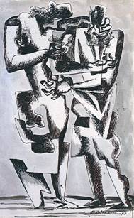 Сила природной целостности и вера в очищающее влияние древних энергий у Цадкина давно в прошлом. Он говорит теперь о человеческом душевном тепле, о ценности соприкосновения, дающегося долгой совместной жизнью, о понимании. Человек мыслящий, пройдя через страшные трагедии вместе со всем миром, он сохранил веру в возможность взаимопонимания. В этом смысле Цадкин — самый «добрый» и «человеческий» гений авангарда ХХ века. Его интонации необычны и не свойственны искусству авангардистов, может быть, они позволяют по-другому взглянуть на позднее творчество Пикассо и Матисса.