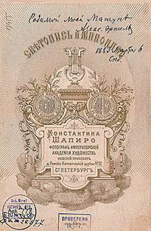 [1]. Речь идет о Константине Александровиче Шапиро (1840–1900), еврейском поэте и фотографе Императорской академии художеств и личном фотографе их императорских высочеств великого князя Владимира Александровича и великой княгини Марии Павловны. Фотомастерская Шапиро располагалась на углу Невского и Б. Морской, 12. Как поэт он в особенности был известен своей поэмой «Содом», в которой в аллегорической форме отразилось дело Дрейфуса. Издал фотографический альбом русских писателей и фотографий-иллюстраций к «Запискам сумасшедшего» Н. В. Гоголя.