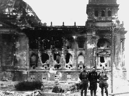 Клавдия Бляхер, Петропавловск-Камчатский. Хотела бы опубликовать фото разбитого Рейхстага. Снимок сделал мой муж Бляхер Михаил Михайлович 4 мая 1945 года трофейным фотоаппаратом. К сожалению, его уже нет с нами, но все фотографии мы бережем. Думаю, еще остались в живых участники войны, возможно, они в тот день были в Берлине, но не сумели сфотографировать Рейхстаг. Пусть посмотрят сейчас, вспомнят те далекие годы. Проклятый фашизм до сих пор не дает покоя. В 16 лет я осталась сиротой, в 1942 году на Украине в м. Райгород Винницкой области, где мы жили, были расстреляны все евреи. Меня как старшую успели отправить в эвакуацию, а родители… Уж больно быстрым шагом шел немец.
