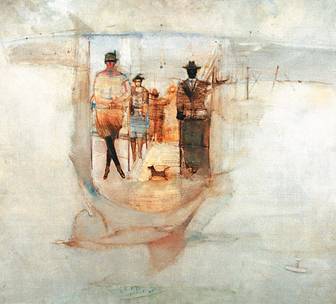 Эта картина с нейтральным названием «Наш переулок утром» и сегодня поражает. Контуры домов и улицы размыты. Все поглощает цвет — приглушенный, мягкий, высветленный. Коричневатый тон перетекает в голубой, зеленоватый. Картина, написанная маслом на холсте, производит впечатление почти акварельной легкости, воздушности. В сущности, она тяготеет к живописной абстракции. Притом что перспектива едва намечена, пространство дышит. «Мне хотелось передать рождение еще неизвестного будущего», — признается Лабас.