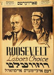 «Рузвельт – выбор профсоюзов». Обложка «Форвертса». Нью-Йорк. 31 ноября 1936 года