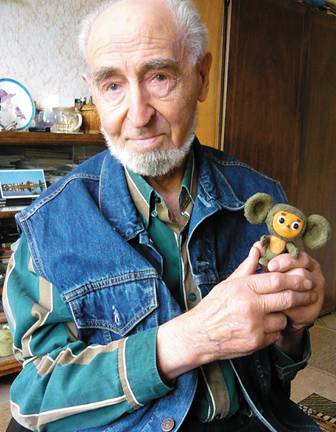 Леонид Шварцман держит в руках своего знаменитого персонажа — Чебурашку