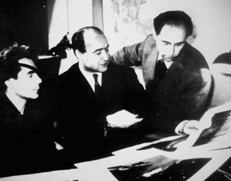 Александр Винокуров, Лев Атаманов, Леонид Шварцман во время работы над «Золотой антилопой». 1954 год