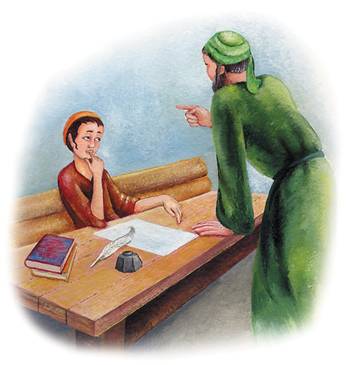 Акива взял с собой немного вещей, попрощался с Рахелью и отправился в бейт мидраш, к знаменитым учителям рабби Элиэзеру и рабби Йеошуа. Учиться Акиве нравилось — он сидел на стуле как приклеенный и читал день и ночь. Раньше на пастбище он занимался тем, что отгонял коров от овец и отличал звук «Ме-е-е» от «Му-у-у». В бейт мидраше Акива научился грамоте, потом одолел простые объяснения Торы, затем перешел к более сложным и постепенно стал толковать Тору сам. Тора проникала в сердце Акивы, как вода, которая постепенно точит камень. Вскоре Акива стал лучшим учеником. Прошло время, и никому не известный Акива превратился в рабби Акиву. Куда подевался незнайка-пастух? Нет его и в помине! А простой ученик, который недавно и читать-то не умел? Он стал знаменитым учителем и ученым, который совершает настоящие открытия.