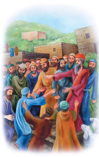 На площади народ окружил рабби Акиву — все старались протиснуться поближе к учителю. Наконец Рахели удалось пробраться к самому рабби. Его ученики накинулись на нее и попытались оттащить: