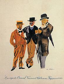 Акварели Бена Шана, посвященные делу Дрейфуса: «Капитан Альфред Дрейфус», «Эксперты», «Полковник Жорж Пикар», «Адвокат Лабори, защитник Дрейфуса, и полковник Пикар». 1930 год