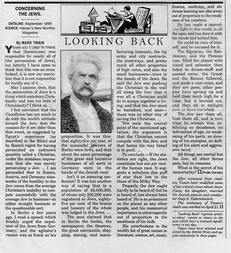 Очерк Марка Твена «Касательно евреев», напечатанный в сентябре 1899 года в журнале «Harper's New Monthly Magazine»
