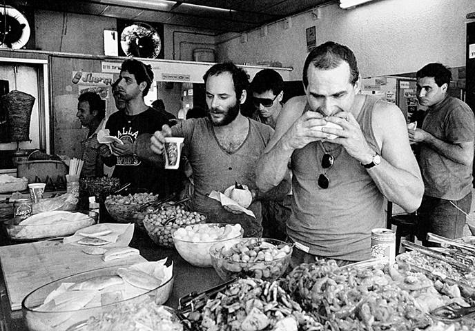 Но ты твердо знаешь, что у тебя кишка тонка — платить Израилю добром за добро. Ты просто недостаточно добрый человек для этого. Вот приходишь ты на просмотр интеллектуального фильма об интеллектуальной жизни йеменских евреев-интеллектуалов в интеллектуальный кинотеатр при иерусалимской «Синематеке». Cадишься перед сеансом выпить кофе в тамошнем знаменитом интеллектуальном кафе «Белый» («Красный» тоже есть, «Синий» вроде планируется). И вот сидит за соседним столиком интеллектуальная молодая компания, тоже, значит, ждет сеанса. И тут один молодой человек смущенно признается друзьям, что забыл дома очки. И друзья тут же возмущенно награждают этого молодого человека мощнейшим подзатыльником со словами: «Скотина, ты же не получишь удовольствия!» Нет, у тебя просто не хватит доброты с этим тягаться. Как не хватит доброты тягаться с охранником при кинотеатре, который так старается поудобнее расположить твою сумку для досмотра, что из сумки вываливается все содержимое. «№?*(:*(№;!!!», — говоришь ты. «Вот! — говорит охранник с некоторой обидой. — Вот! Я стараюсь сделать тебе хорошо, а ты реагируешь на это ровно так же, как моя девушка!» Как не хватит у тебя доброты тягаться с пекарем, который отказывается продать тебе багет, потому что «я же вижу — вы не багетный человек. Я заверну вам два бублика, потому что вы бубличный человек. Не верите — уходите и идите к кому-нибудь, кто не желает вам добра». Мы бы, может, и пошли; мы только боимся, что ближайший такой человек находится в Сирии.
