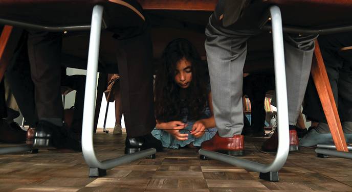В итоге павильон выглядит мини-ретроспективой Ландау, где царит идея диалога всего и вся. Политический диалог занимает здесь не последнее место: не зря в одном из фильмов мальчишки беспрерывно чертят на песке линии, символизирующие границы, а в финальном видео выставки сидящая под столом девочка связывает вместе шнурки от ботинок взрослых людей, ведущих за этим самым столом какие-то переговоры.