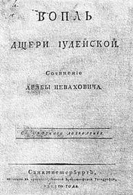 Титульный лист книги Льва Неваховича «Вопль дщери иудейской». Петербург. 1803 год