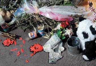 Цветы и игрушки, принесенные к стенам еврейской школы «Оцар