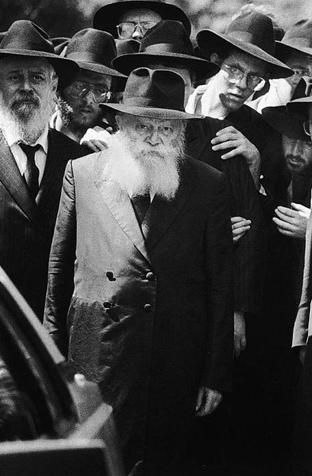 Любавичский Ребе — Менахем-Мендл Шнеерсон на похоронах ребецн Хаи-Мушки. 10 февраля 1988 года