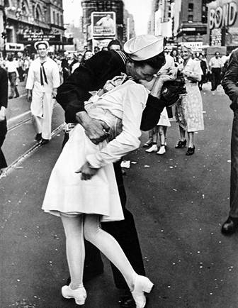 14 августа 1945 года фотограф прогуливался по «военному островку», там, где на Таймс-сквер в Нью-Йорке находился пункт набора добровольцев в армию США. Как раз в семь часов по радио объявили о капитуляции Японии, вся площадь превратилась в один крик радости, незнакомые люди кинулись обнимать друг друга. Айзенштадт приметил матроса, в возбуждении носившегося в толпе и целовавшего всех женщин без разбору. «Я наблюдал, но желания сфотографировать не появлялось. Неожиданно он схватил что-то белое. Я нажал спуск в тот миг, когда матрос поцеловал медсестру». Именно этот момент стал для американцев символом победы во второй мировой войне. Ну и название фотографии автор дал соответствующее: «Безоговорочная капитуляция».