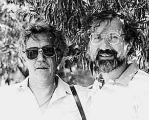 Поэт Михаил Айзенберг (справа) и поэт и премьер-министр Крыма Евгений Сабуров на острове Тузла. 1993–1995 годы