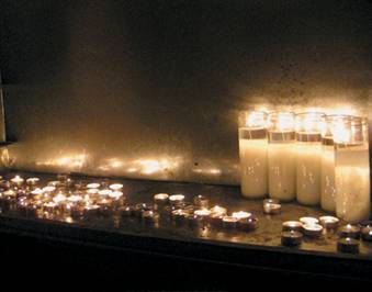 Поминальные свечи на могиле Леви-Ицхока Шнеерсона, зажженные в годовщину его смерти (20 ава 1944 года). 8 августа 2012 года