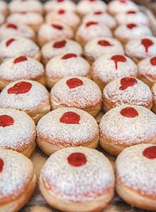 Даже если бы вы запутались в еврейском календаре, случись вам оказаться в Израиле на Хануку, пончики напомнили бы вам о ней. В эти дни израильтяне поедают их миллионами. Как уже было сказано, есть два основных вида пончиков: суфганийот — дрожжевые и бурмиэлос — без дрожжей. И множество подвидов тех и других.